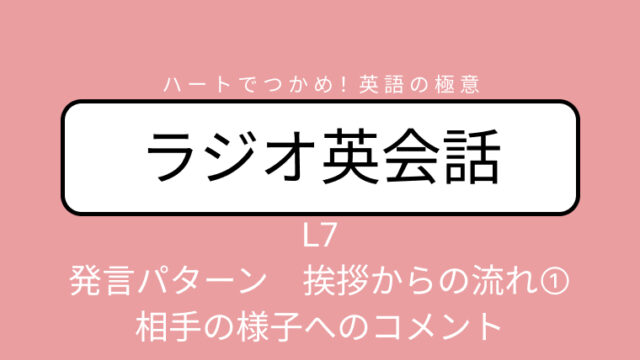 ラジオ英会話 NHKラジオ英会話のディクテーション「発言パターン ー あいさつからの流れ① ー 相手の様子へのコメント」L7 2026/4/7 2026年4月7日 ichiroan ディクテーション 講師陣の英会話を書きとり(スクリプト) 大西先生、デイビッドさん、ろーざさんの英会話部分を書きとってみましょう!(大西 …