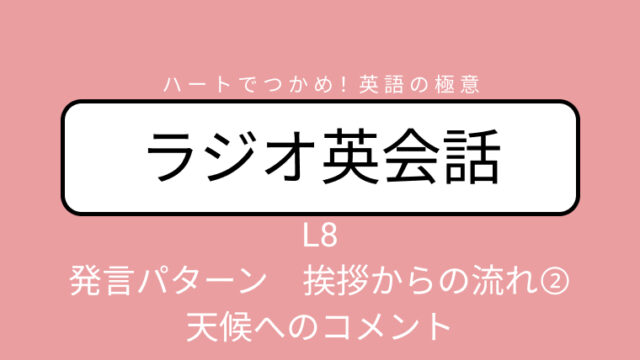 ラジオ英会話 NHKラジオ英会話のディクテーション「発言パターン ー あいさつからの流れ② ー 天候へのコメント」L8 2026/4/8 2026年4月8日 ichiroan ディクテーション 講師陣の英会話を書きとり(スクリプト) 大西先生、デイビッドさん、ろーざさんの英会話部分を書きとってみましょう!(大西 …