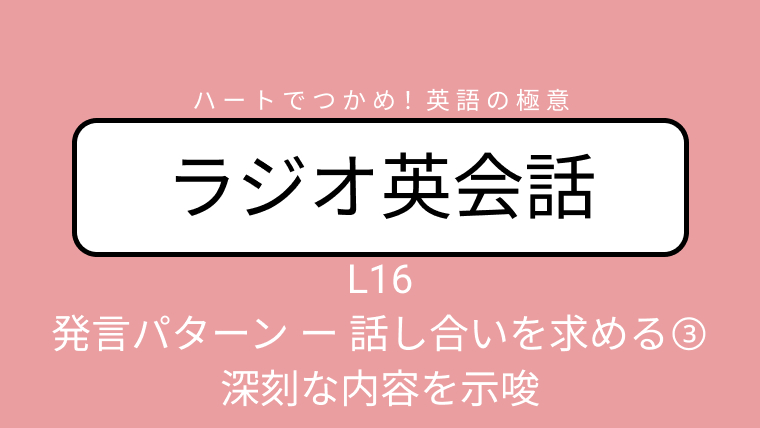 NHKラジオ英会話のディクテーション「発言パターン ー 話し合いを求める③ ー 深刻な内容を示唆」L16 2026/4/20