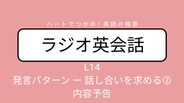 ラジオ英会話 NHKラジオ英会話のディクテーション「発言パターン ー 話し合いを求める② ー 内容予告」L14 2026/4/16 2026年4月16日 ichiroan ディクテーション 講師陣の英会話を書きとり(スクリプト) 大西先生、デイビッドさん、ろーざさんの英会話部分を書きとってみましょう!(大西 …