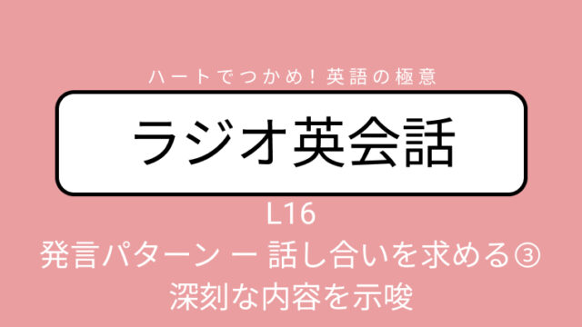 ラジオ英会話 NHKラジオ英会話のディクテーション「発言パターン ー 話し合いを求める③ ー 深刻な内容を示唆」L16 2026/4/20 2026年4月20日 ichiroan ディクテーション 講師陣の英会話を書きとり(スクリプト) 大西先生、デイビッドさん、ろーざさんの英会話部分を書きとってみましょう!(大西 …